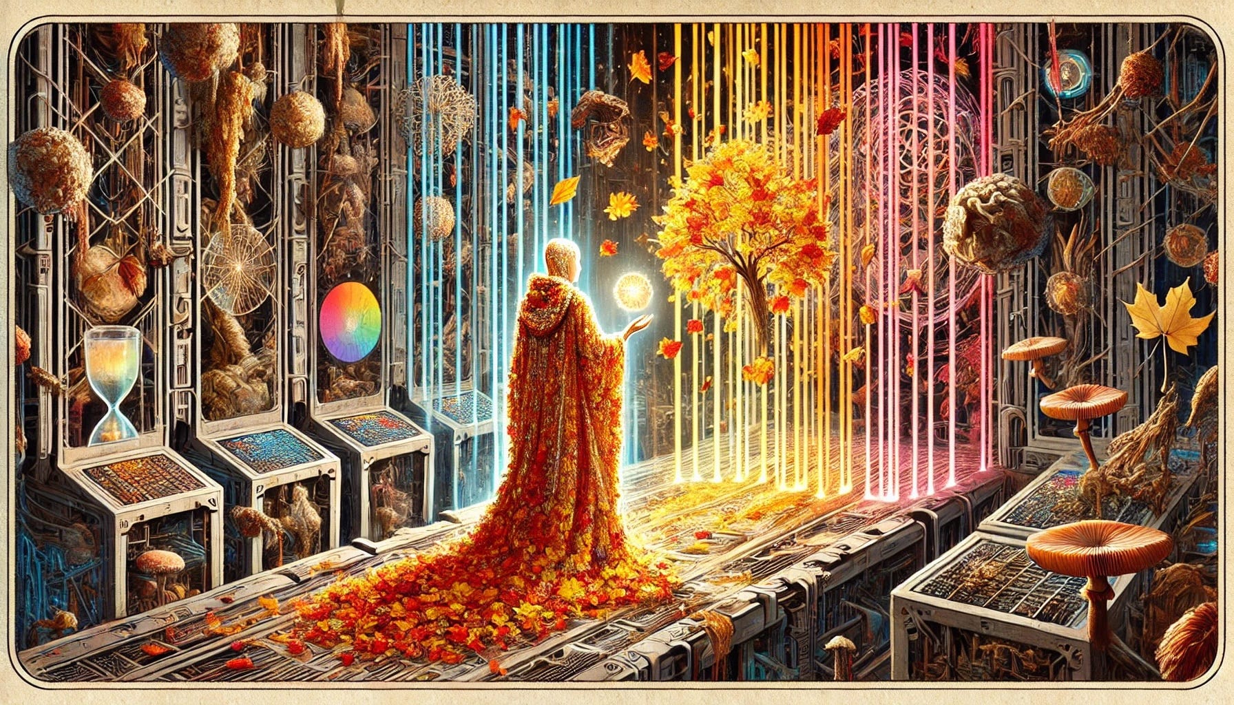 An AI assistant, Claude, helped architect the world in which the story takes place – including thematic structures and series-wide symbolism. But the intimate experiences at the heart of the story, and how that world comes to life through language, came from a human writer – Nick. Accompanying imagery was AI-generated using DALL•E 3, inspired by the look and feel of a Tarot deck.